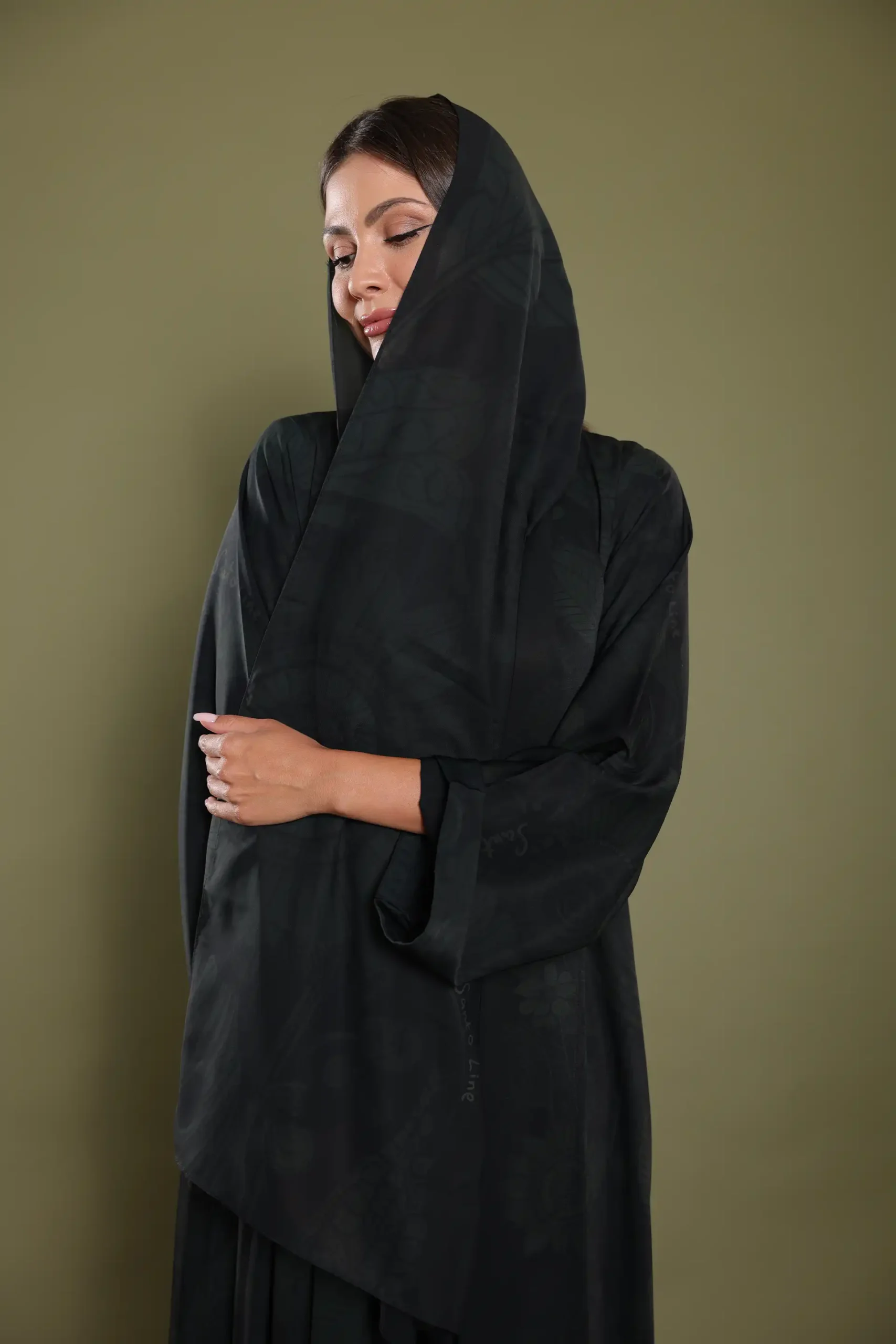 The print also takes cues from the visual rhythm of urban landscapes – grids, windows, and skylines. The structured lines and blocks in the design mimic the repetition and order seen in modern city architecture. This fusion of tradition with contemporary form gives the abaya a cosmopolitan edge while staying rooted in elegance and cultural expression.