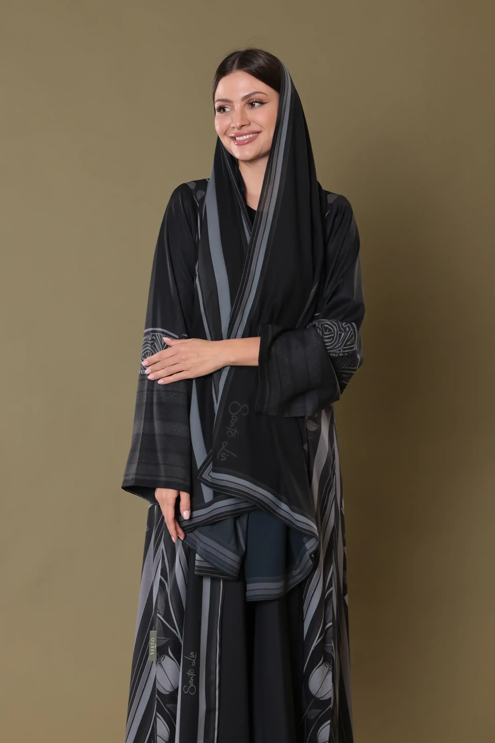 The print also takes cues from the visual rhythm of urban landscapes – grids, windows, and skylines. The structured lines and blocks in the design mimic the repetition and order seen in modern city architecture. This fusion of tradition with contemporary form gives the abaya a cosmopolitan edge while staying rooted in elegance and cultural expression.
